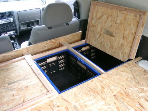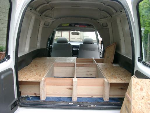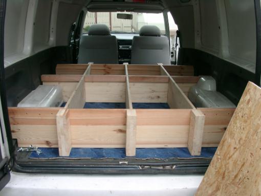 Es gibt andere Lösungen für diese Vorgaben da werden komplette Kisten benutzt und in den Laderaum gestellt. Dann wird es allerdings sehr schwer wenn Mann oder Frau sich mit den außerhalb des Fahrzeuges gefüllten Kisten abbengeln muss. Und meist muss dann auch die halbe Liegefläche demontiert werden, um an diese Kisten dran zu kommen