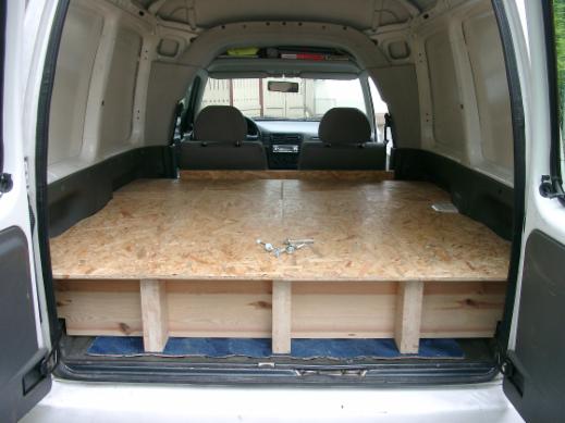 Die Länge der Ladefläche am Boden des Caddys ist gut 1,70 Meter, also nicht ganz lang genug für größere Lieger. Die Breite zwischen den Radkästen nur 1,10 Meter. Das galt es zu verbessern. Und das Motto "Raum ist in der kleinsten Hütte" wird erweitert durch "man muss nur was draus machen".
