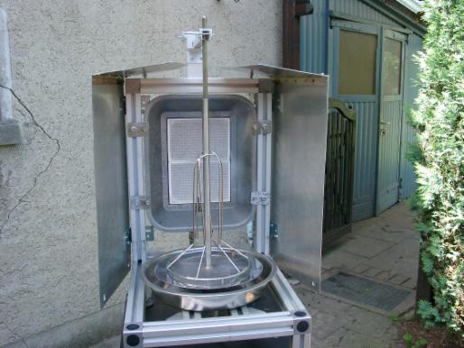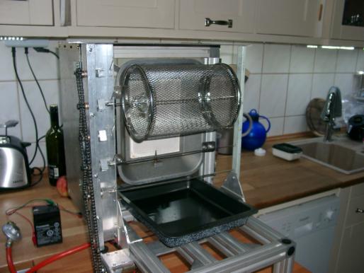 Auf der Ablage oberhalb der Trommel (hier schlecht zu sehen) können Saußen oder ähnl. erhitzt oder auch einfach nur warmgehalten werden