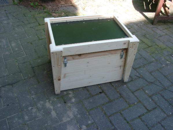 Diese Kiste wird für ihre Funktion als Truhe gefertigt. Der Deckel ist Siebdruck/ Anhängerboden
